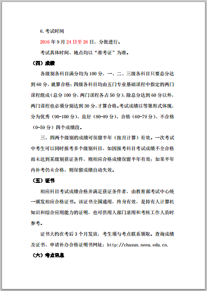 關(guān)于組織2016年9月全國計算機(jī)等級考試(NCRE)報名的通知