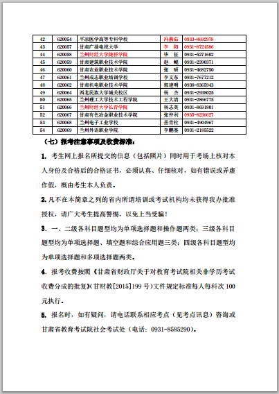 5.詳細(xì)信息請參看甘肅省教育考試院《關(guān)于做好2016年9月全國計算機(jī)等級考試網(wǎng)上報名工作的通知》(甘教考院〔2016〕95號文件)及《甘肅省2016下半年全國計算機(jī)等級考試公告》(已傳至群文件)。