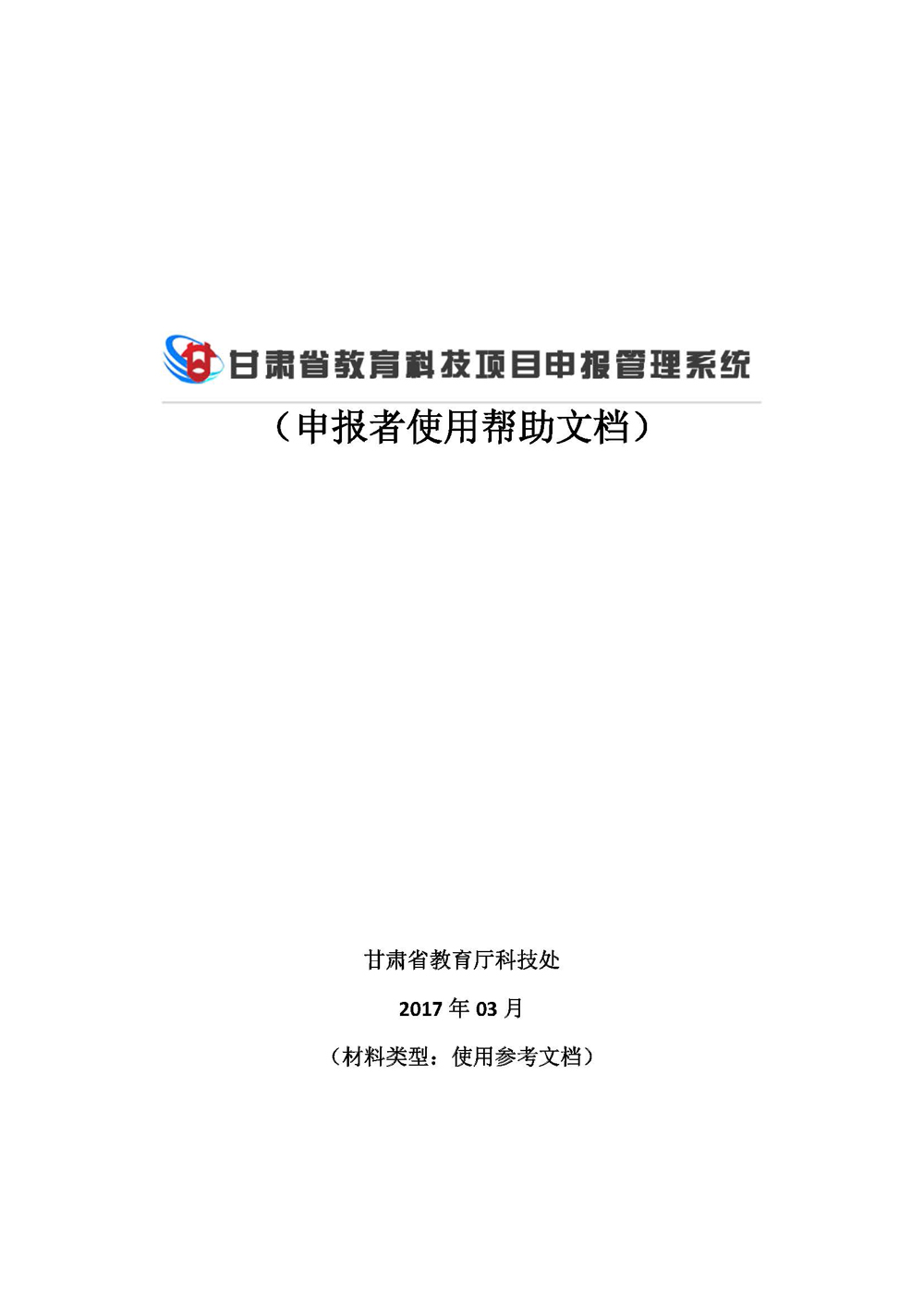 甘肅省教育廳關(guān)于申報2017年度甘肅省高等學(xué)校科研項目-申報者使用文檔