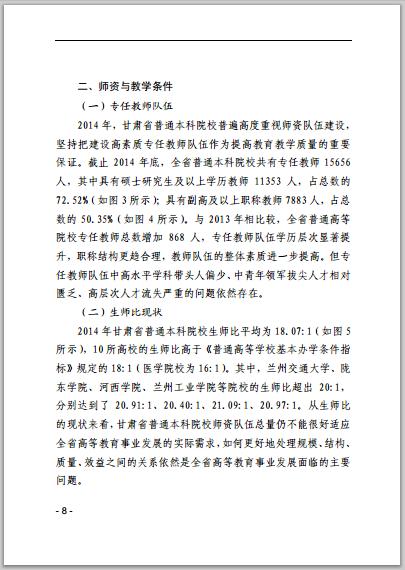 甘肅省普通高等學(xué)校2014年本科教學(xué)質(zhì)量報(bào)告