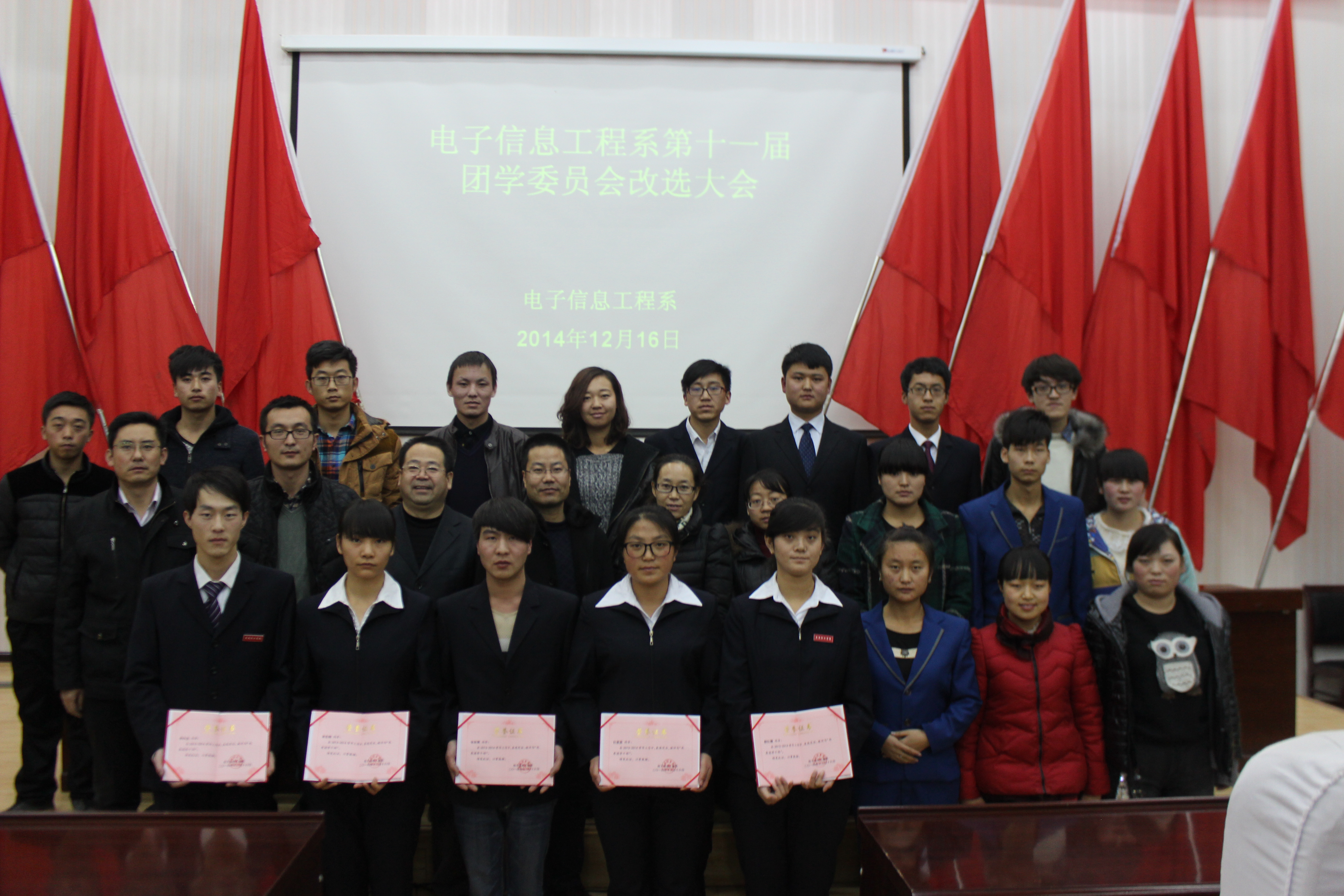 12月16日下午,電子信息工程系第十一屆團學委員會改選大會在學院尚德廳隆重召開。電子信息工程系主任白玉珍、書記張伯成及我系全體班主任、兄弟系學生會代表、我系學生代表268人參加了本次大會。