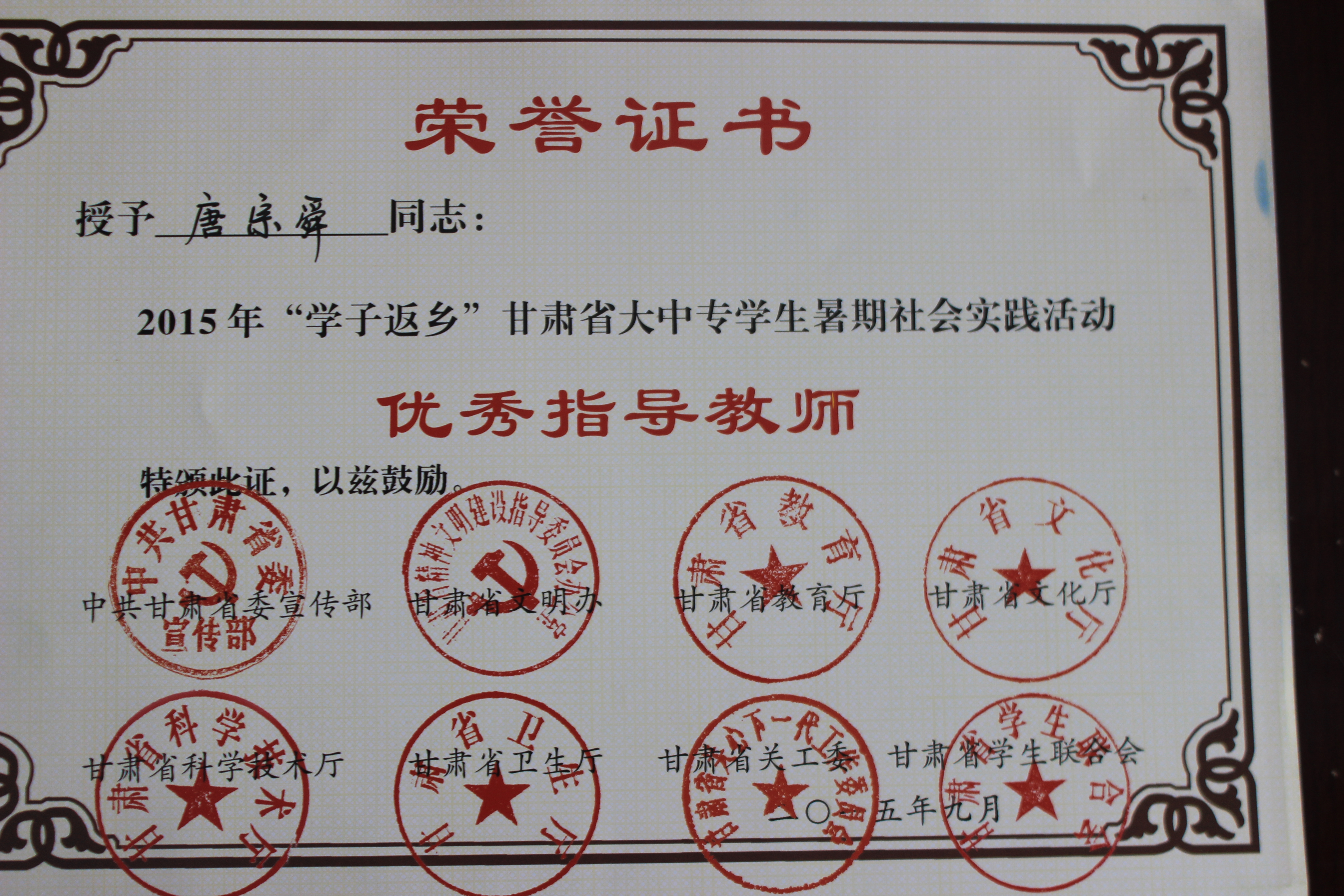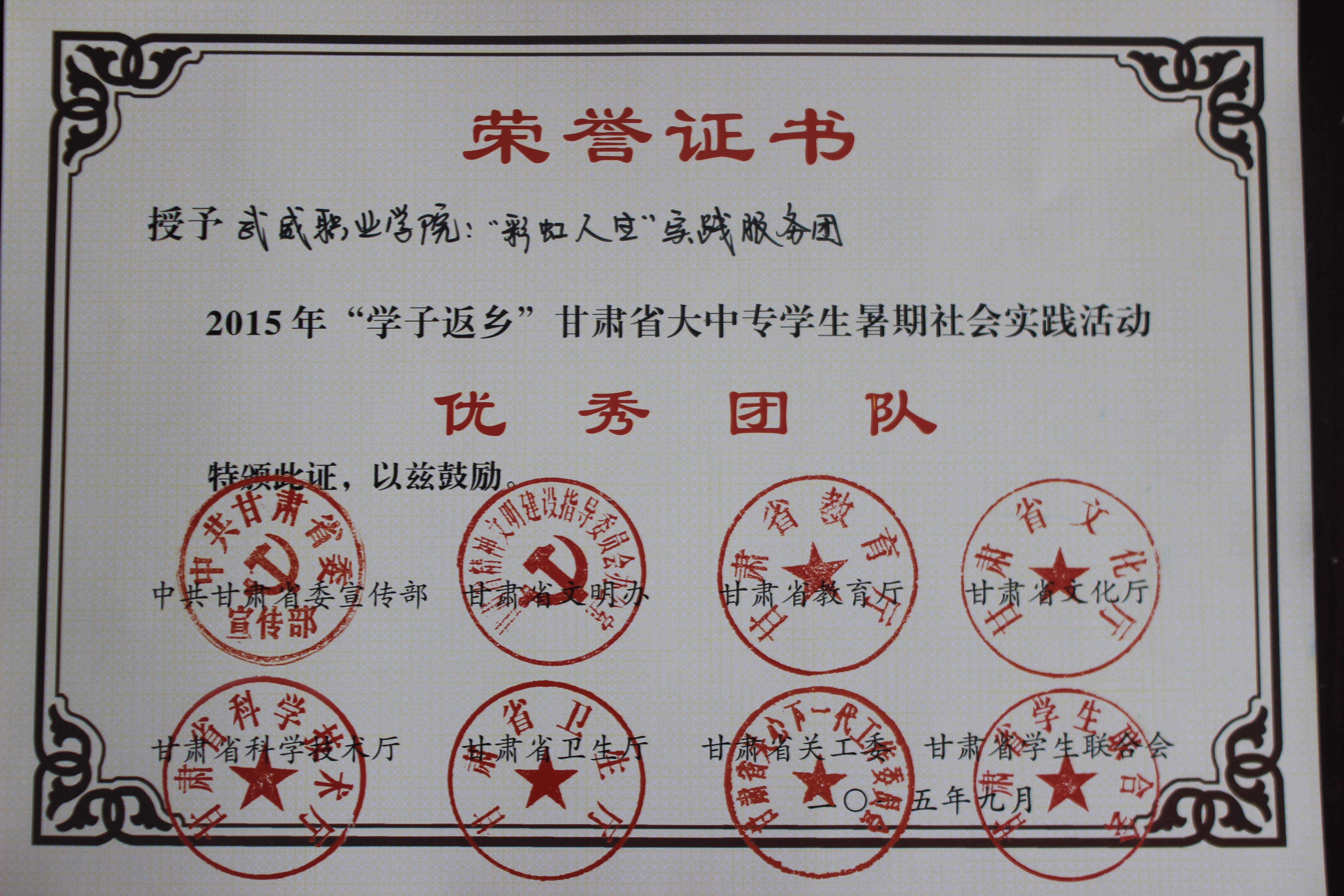 2015年“學(xué)子返鄉(xiāng)”甘肅省大中專學(xué)生暑期社會實踐活動-優(yōu)秀團隊