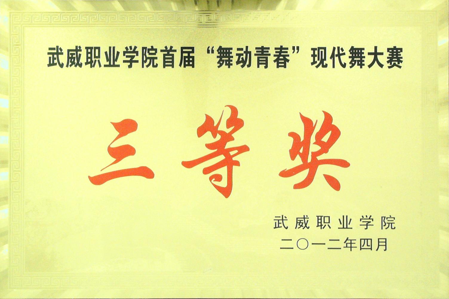 首屆“舞動(dòng)青春”現(xiàn)代舞大賽中三等獎(jiǎng)