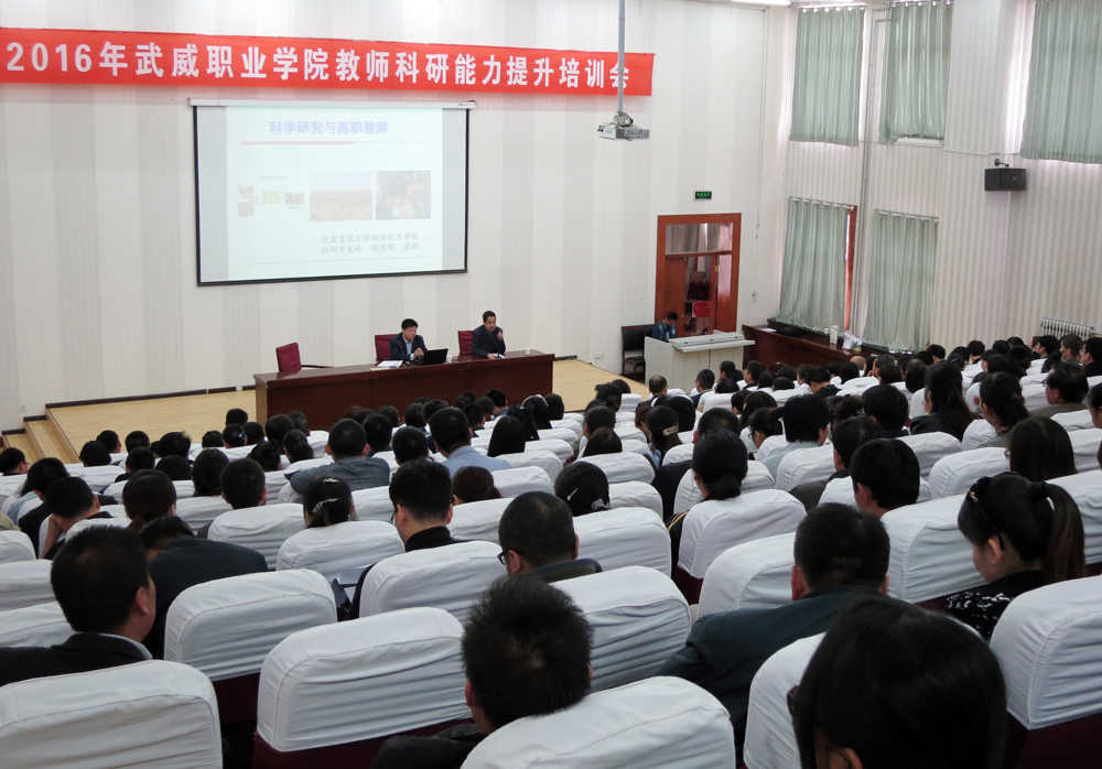 為進(jìn)一步推進(jìn)我院科研工作,營造科研氛圍,提高教師科研能力,滿足教師對科研工作的需求,4月20日下午,學(xué)院科研處特邀甘肅畜牧工程職業(yè)技術(shù)學(xué)院教授、科研開發(fā)處處長張登輝在正德廳作了題為“科學(xué)研究與高職教師”為主題的培訓(xùn)講座。學(xué)院副院長翟存祥主持會議,全院260多名教師參加了此次培訓(xùn)。