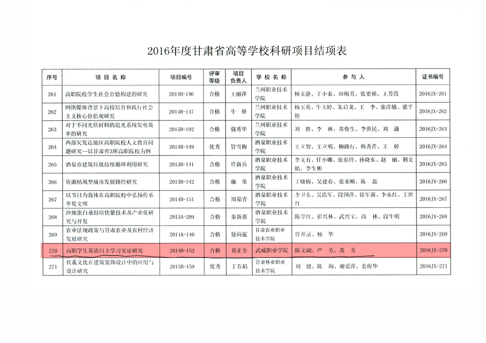 甘肅省教育廳關(guān)于2016年度甘肅省高等學(xué)校科研項(xiàng)目結(jié)項(xiàng)情況的通知