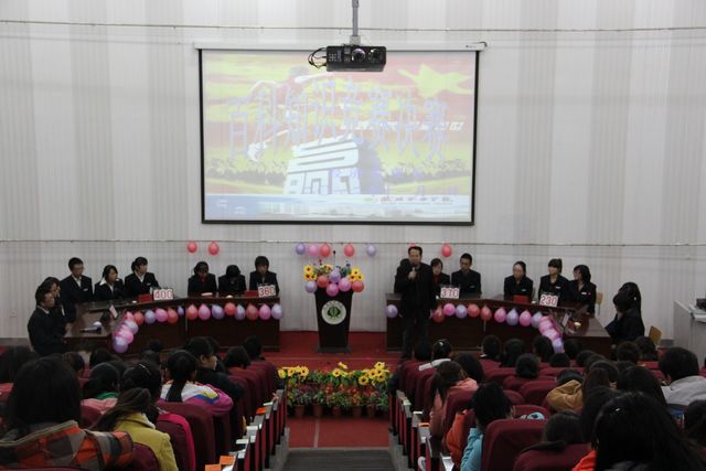 2012年11月7日晚,學(xué)院東階梯教室燈火輝煌,座無虛席。經(jīng)過組委會師生的精心籌備,經(jīng)濟(jì)管理系第五屆大專生百科知識競賽決賽在廣大師生的期盼中順利拉開了帷幕。學(xué)院副院長王永緒、教務(wù)處處長魏潤民、學(xué)生處處長潘從民、院團(tuán)委副書記王政、經(jīng)濟(jì)管理系主任邸光才、黨總支書記白玉珍及經(jīng)濟(jì)管理系全體老師出席了決賽。