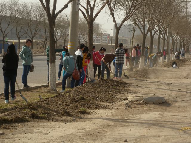 為了更好的綠化城市環(huán)境,學(xué)院安排學(xué)生進(jìn)行義務(wù)植樹勞動。2013年4月8日早晨八點,我系邸主任、白書記以及全體班主任帶領(lǐng)經(jīng)濟(jì)管理系650名學(xué)生在武威市二環(huán)西路(農(nóng)機(jī)十字-海藏南湖-金熊貓公寓綠地東、北)進(jìn)行了翻挖、清理綠化帶、樹穴等任務(wù)。