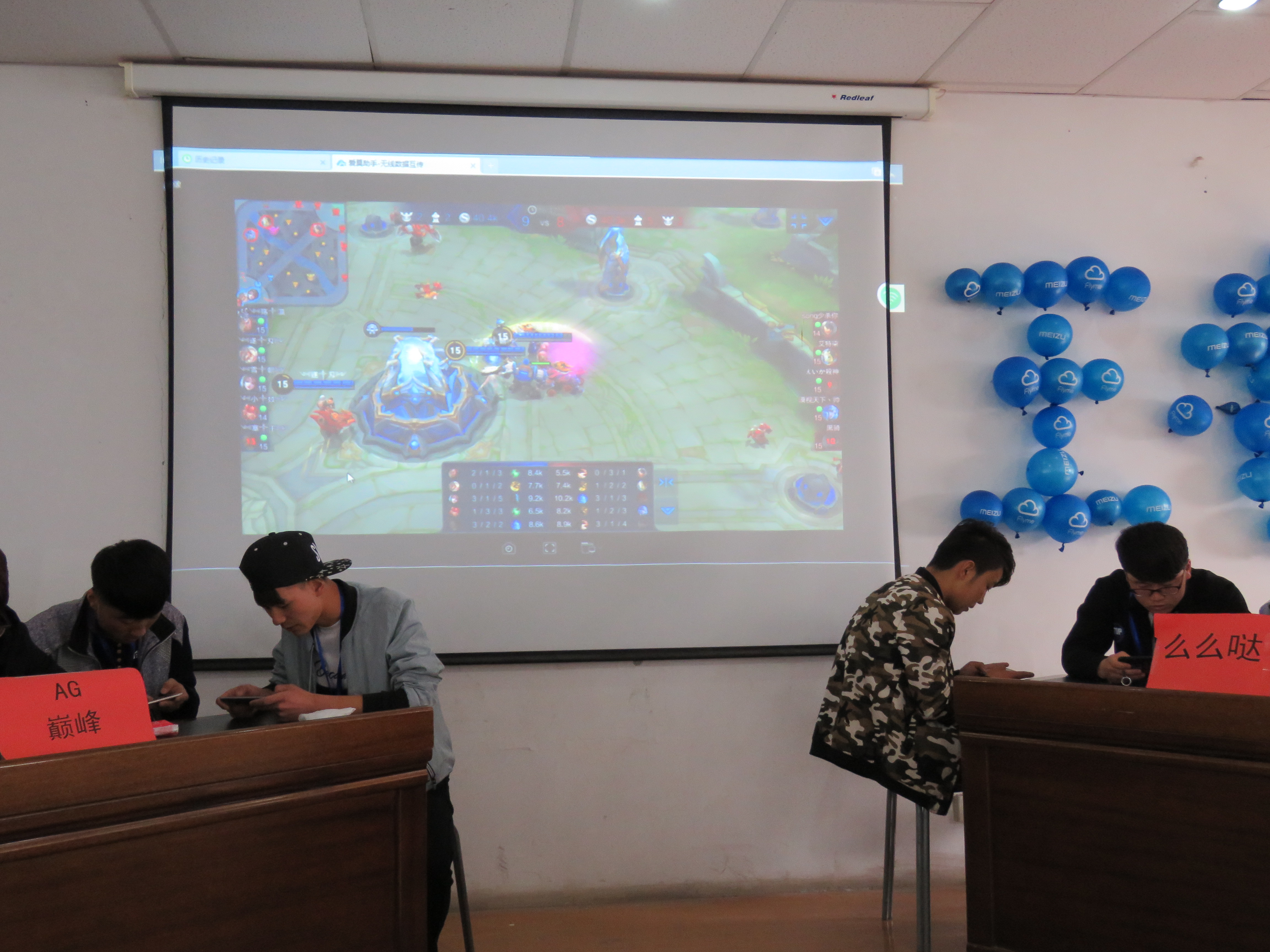 此次游戲競技比賽以5人為一組的團隊項目形式開展。進過預賽淘汰,最終有20個團隊進入決賽?;谑孪瘸浞值男麄鳎?6:40時,不少同學到場加油觀戰(zhàn)并積極參與。一番調(diào)試之后,表演賽于17:00時正式開始?,F(xiàn)場同時設有3個競賽臺,同時可供3隊團隊進行對決?,F(xiàn)場更是懸掛大屏幕,以跟進賽程,滿足更多王者榮耀手游玩家的觀摩需要?,F(xiàn)場觀眾之心全然隨戰(zhàn)情跌宕起伏,場面激烈,氣氛活躍。參加夠級比賽的有6個組,采取首輪淘汰的制度,勝出的3個組打循環(huán)賽。事先制定了夠級的具體規(guī)則,然后按積分來判斷最后的名次。