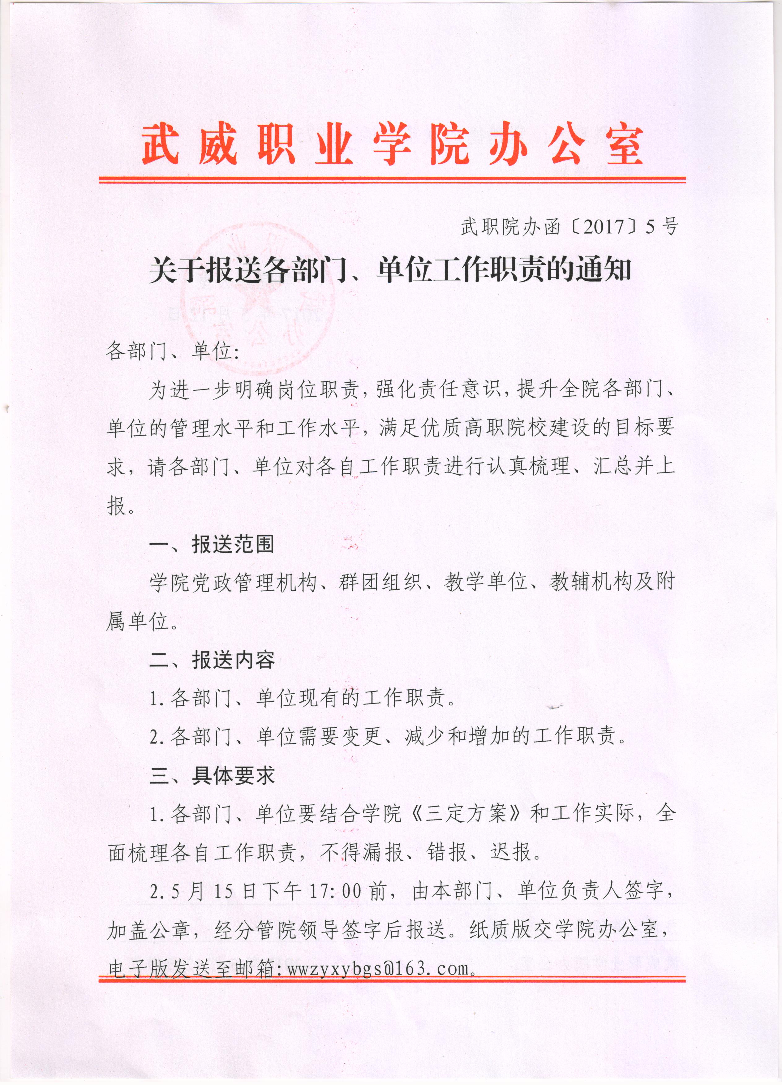 關(guān)于報(bào)送各部門、單位工作職責(zé)的通知