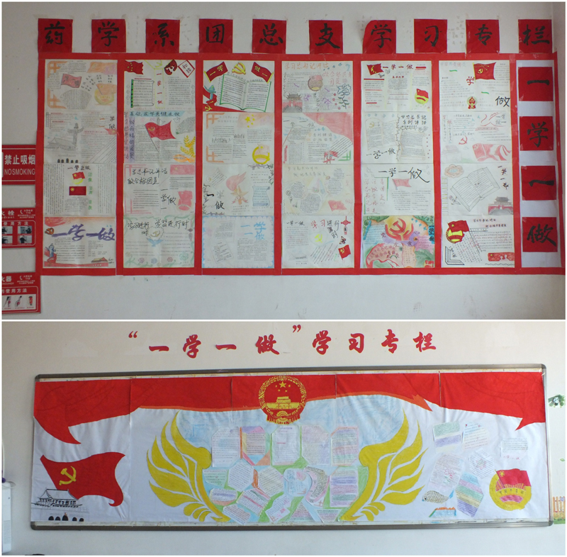 為深入貫徹落實“學(xué)習(xí)總書記講話,做合格共青團(tuán)員”教育實踐,扎實推進(jìn)“一學(xué)一做”學(xué)習(xí)教育,在系黨總支的領(lǐng)導(dǎo)下,經(jīng)過認(rèn)真細(xì)致策劃布置,4月24日下午,藥學(xué)系團(tuán)總支組織開展了“一學(xué)一做”黑板報??u比活動。