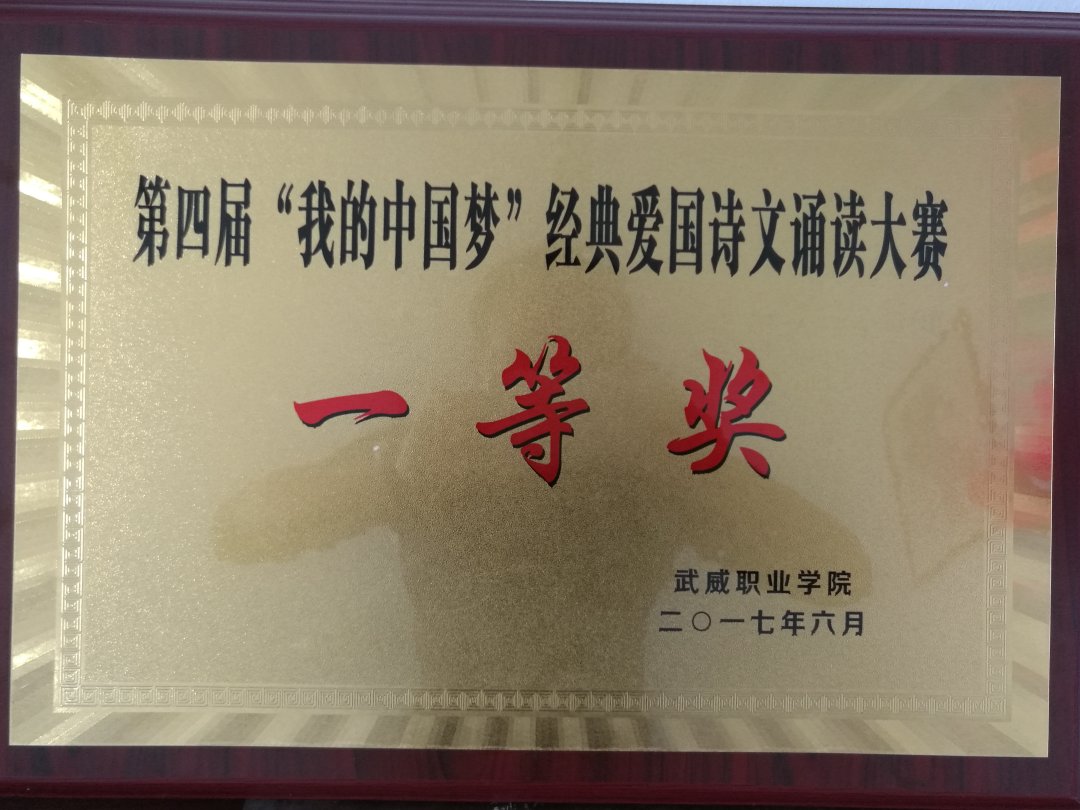 為進一步推進優(yōu)質(zhì)校建設,加強學生思想素質(zhì)修養(yǎng),豐富學生課余文化生活,提高學生精神文明建設,我系選派由15學10曹智娟,李濤濤,15學4王菲,16動漫林露組成的參賽隊參加武威職業(yè)學院第四屆愛國詩文朗誦比賽決賽,比賽在學院正德廳舉行,我系參賽作品《她在云中笑》榮獲決賽一等獎。同時,對推進學院優(yōu)質(zhì)校建設做出更大的努力。