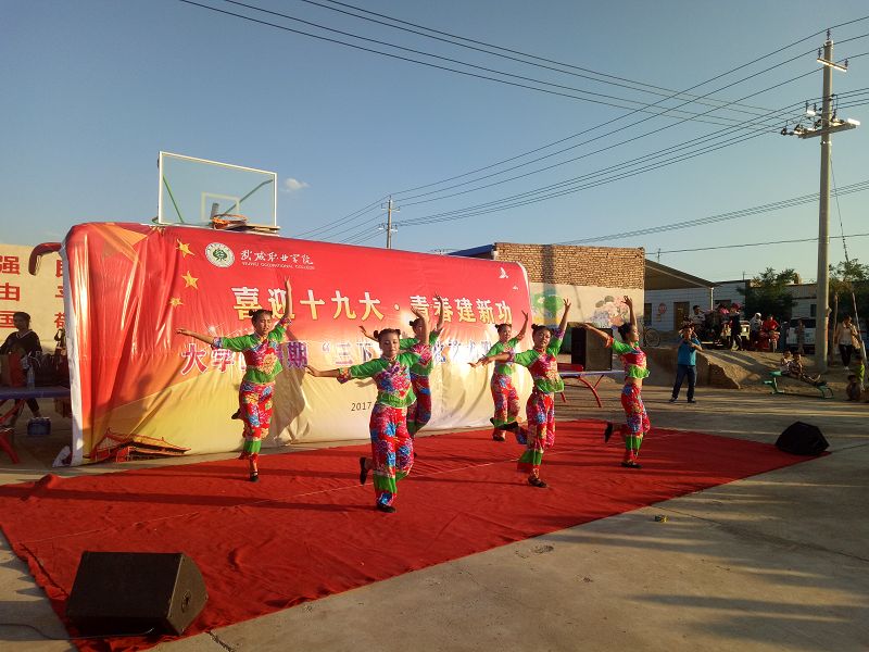 由人文藝術(shù)教育系團(tuán)總支組織的文藝志愿者隊伍在歷經(jīng)一個多月精心準(zhǔn)備下,共編排基層人民群眾喜聞樂見、貼近基層生活實際的文藝節(jié)目十余個,其形式多樣、內(nèi)容豐富,包含民族民間舞、印度舞、現(xiàn)代舞、小合唱、女聲獨唱、男聲獨唱、男聲二重唱、古箏歌伴舞、薩克斯獨奏等。