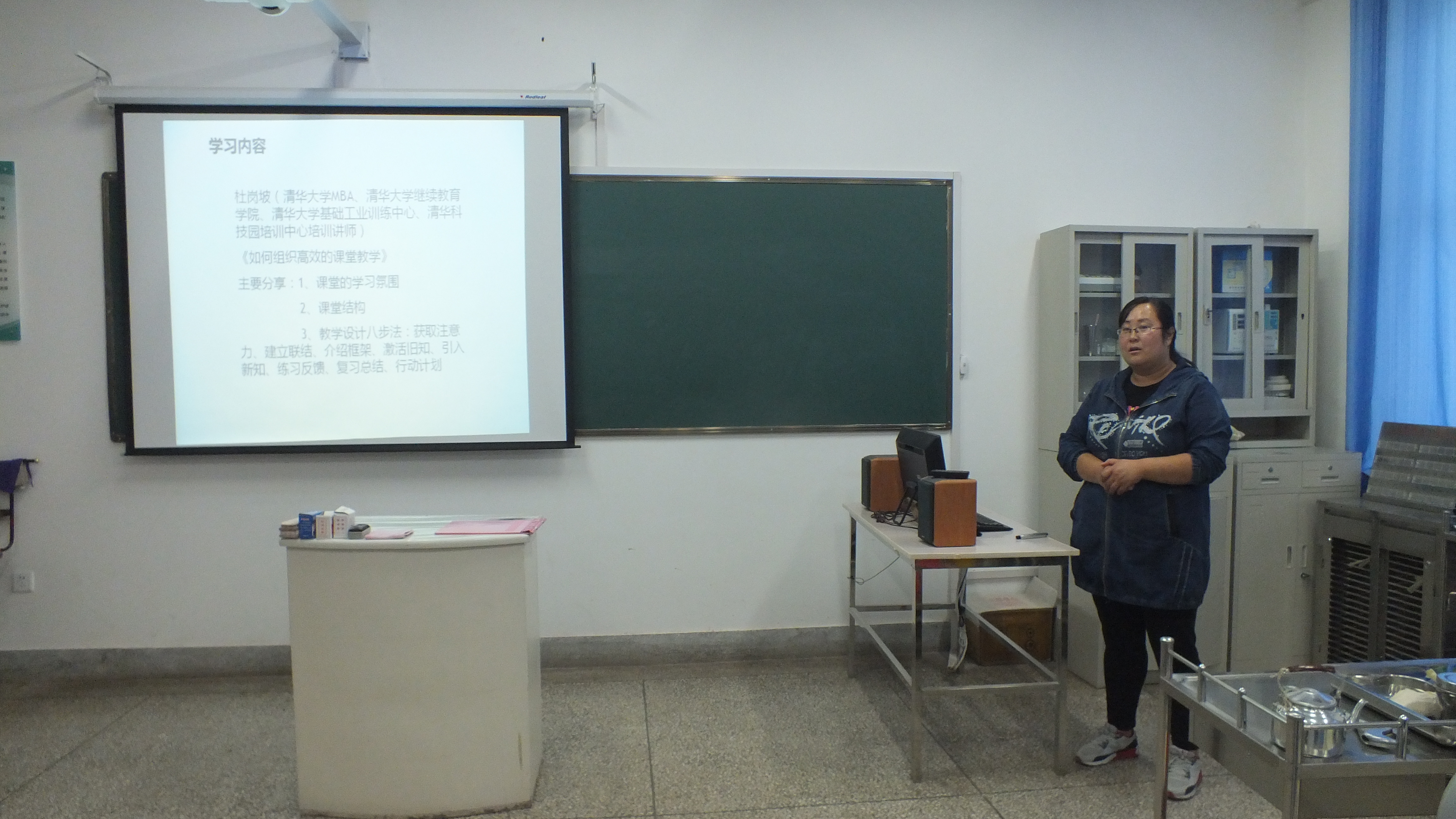 北京參加全國職業(yè)院校教練式教學(xué)方法與課堂教學(xué)設(shè)計高級研修班的梁育霞老師主要匯報了學(xué)習(xí)到的教學(xué)方法和課堂設(shè)計,一堂精彩的課程要有一個恰到好處的課堂設(shè)計,好的課堂設(shè)計又要結(jié)合好的教學(xué)方法,鼓勵老師們多與經(jīng)驗豐富的老師們交流經(jīng)驗提高課堂設(shè)計水平。