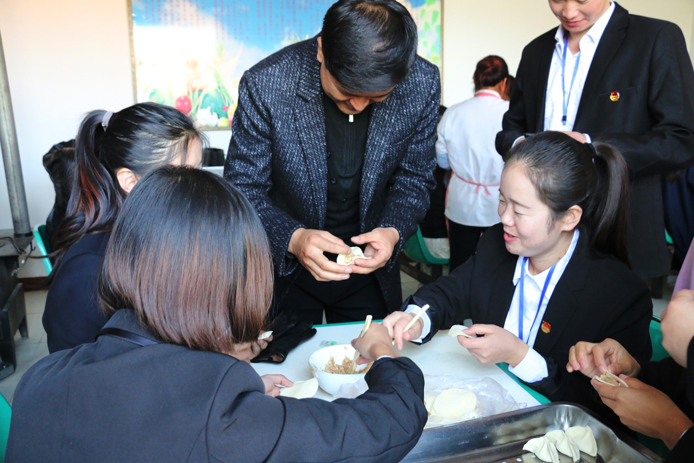 上午八點(diǎn)半,醫(yī)學(xué)技術(shù)學(xué)院各位黨員、入黨積極分子、團(tuán)學(xué)干部、師生代表在廚房為老人包餃子,并整理被褥;康復(fù)治療專業(yè)教師黨員高萬(wàn)飛為老人講解“如何健康養(yǎng)生”;系團(tuán)總支為老人們送上毛巾、牙膏、香皂等日常生活用品;愛(ài)牙協(xié)會(huì)的志愿者為老人,進(jìn)行牙齒檢查,講解如何愛(ài)護(hù)牙齒;中醫(yī)養(yǎng)生協(xié)會(huì)的志愿者為老人們測(cè)血壓,演示常用的按摩方法。中午時(shí)分,老人們吃著熱氣騰騰的餃子,看著全系師生代表為老人們準(zhǔn)備的精彩節(jié)目,臉上洋溢著幸福的笑容。