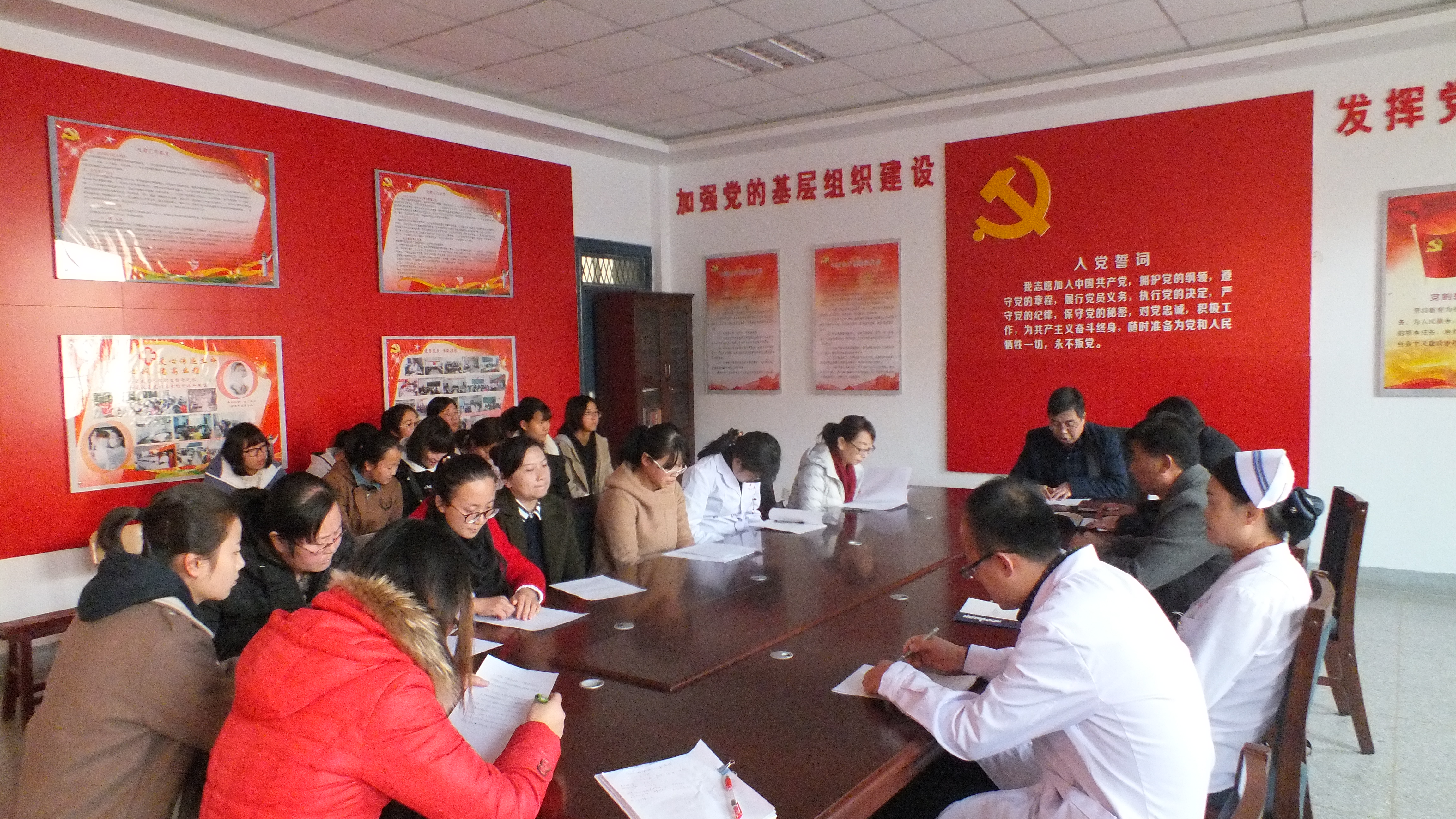 11月16日,護(hù)理系黨總支在明遠(yuǎn)樓103黨員活動(dòng)室召開(kāi)了十九大精神學(xué)習(xí)研討交流會(huì),護(hù)理系黨總支書(shū)記張建輝、主任韓曉萍及全體黨員同志、入黨積極分子參加了本次學(xué)習(xí)研討。黨總支成員就如何學(xué)習(xí)、理解、貫徹好十九大精神展開(kāi)研討交流并聽(tīng)取各位黨員發(fā)言,分享黨員學(xué)習(xí)心得,暢談學(xué)習(xí)體會(huì),抒發(fā)愛(ài)黨愛(ài)國(guó)情懷。