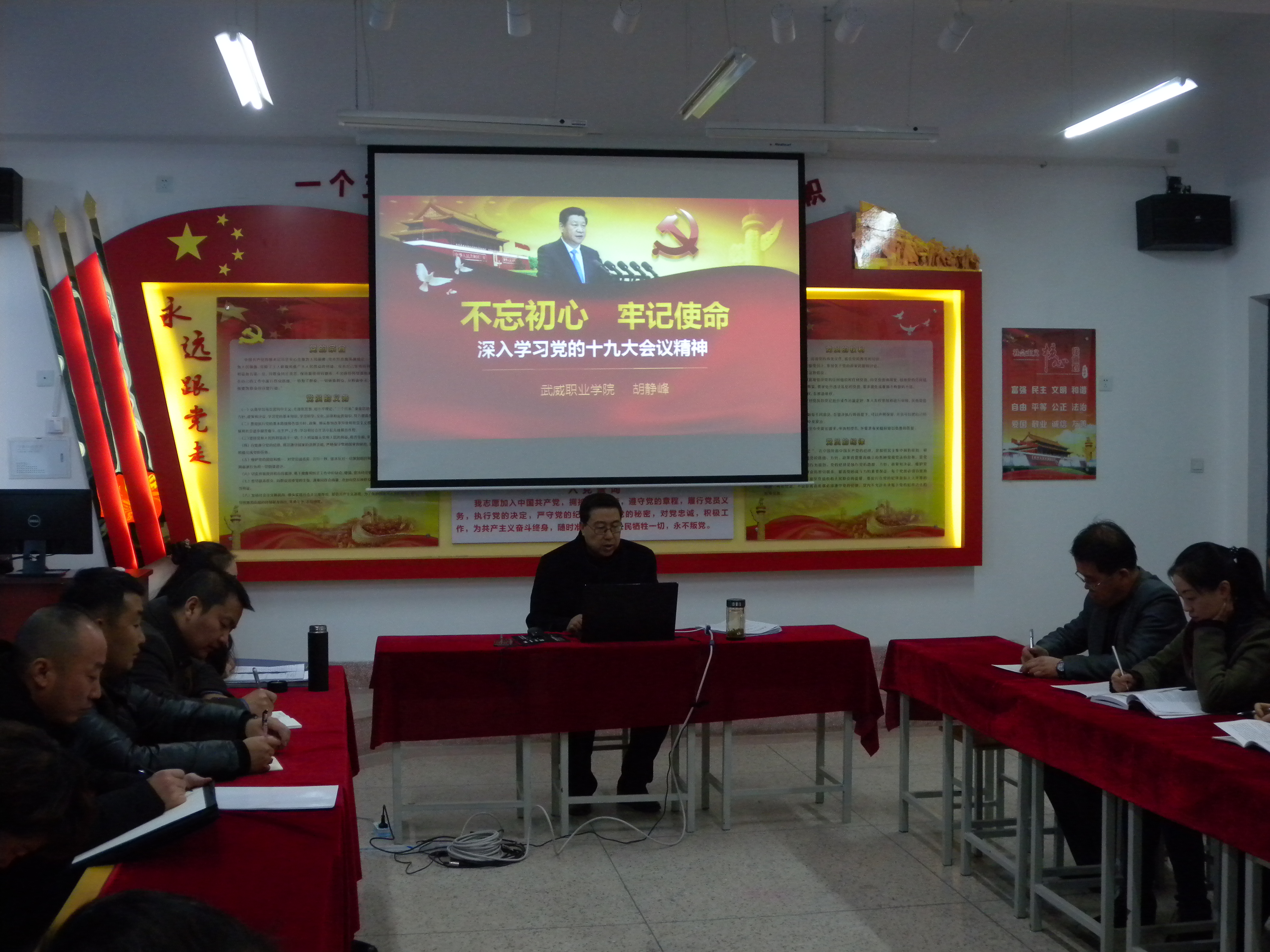 為深入學(xué)習(xí)黨的十九大會(huì)議精神,人文藝術(shù)教育系黨總支于2017年11月28日下午在勵(lì)勤樓209黨員活動(dòng)室開展了書記講黨課活動(dòng)。黨課由胡靜峰同志主講,題目為《不忘初心 牢記使命--深入學(xué)習(xí)黨的十九大會(huì)議精神》,全體黨員參加了此次活動(dòng)。